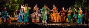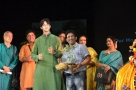 The stage was inspired by the Amrakunja of Shantiniketan and the scenes in the backdrop showed the spectacular nature scapes and graphic details on the extent of global warming. Five different classical dance forms were used to depict the five elements in the tree planting scene. In all the concert was a visual and aural treat for those present.